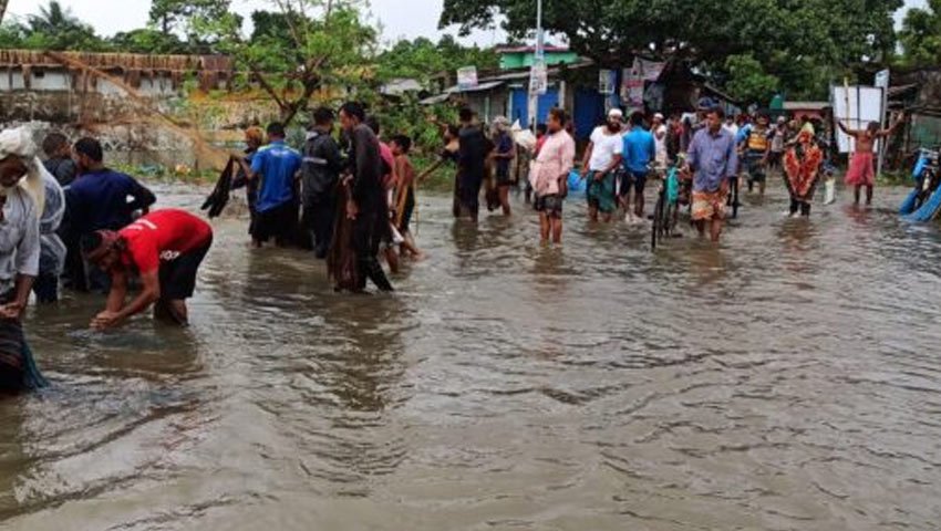 সাতক্ষীরার বেতনা নদীর বেড়িবাঁধ ভেঙে গেছে